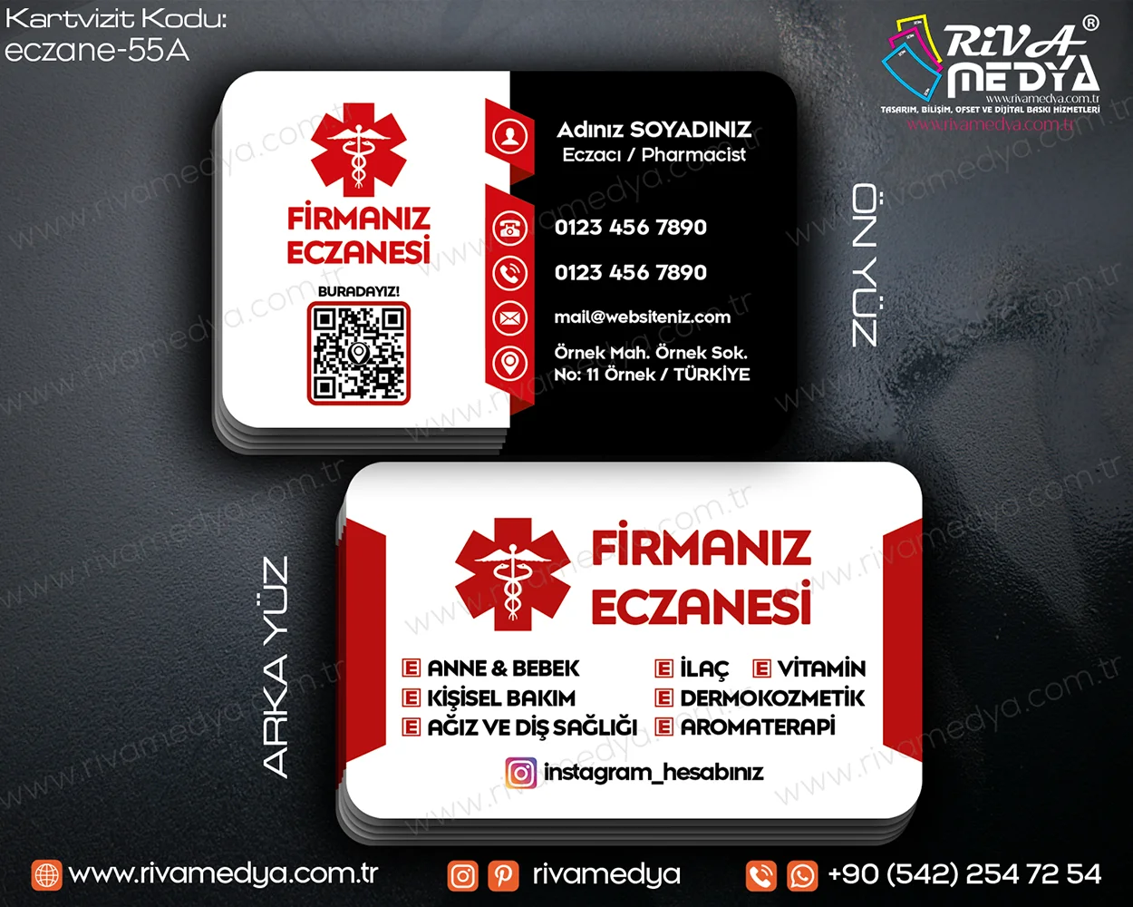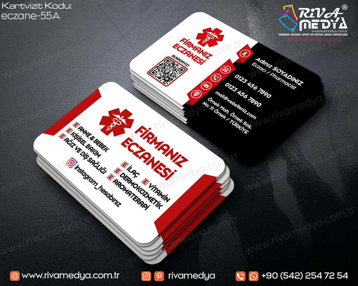 Özgün detaylar ve kreatif tasarımın buluştuğu Modern ve Profesyonel Eczane Kartvizit örneği, kurumsal kimliğinizin güçlü bir temsilcisidir.
